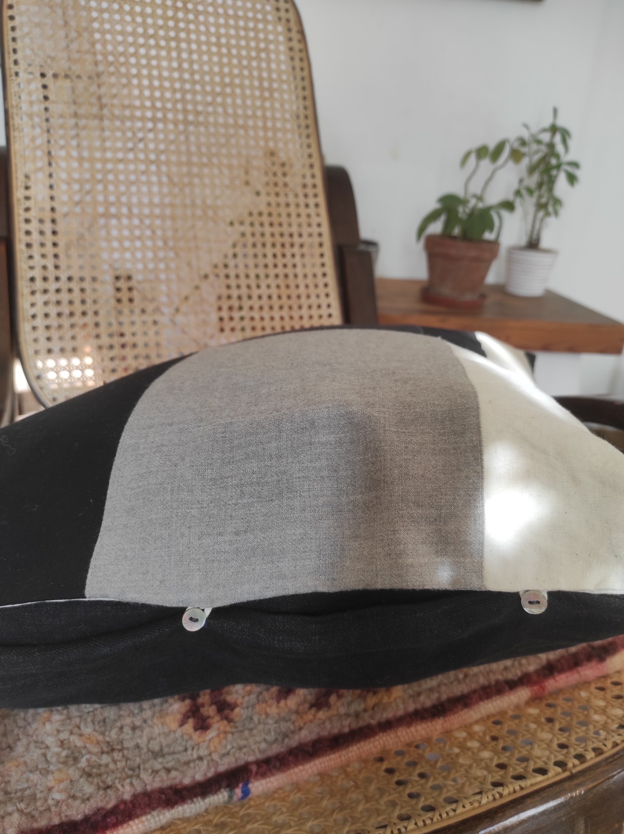 La housse se ferme à l'aide de boutons en nacre et de ses petites passants en coton.